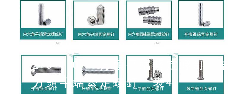 1、Flat:平頭 (鎖入后,頂部與工作件齊平)2、Oval:色拉頭、O頭、半沉頭 3、Round:圓頭 4、Pan:圓扁頭 5、Truss:大圓扁頭 6、Hex:六角頭 A-5:Finish Code/外觀處理。公制自攻螺絲 :于品名后方直接標示 Tapp 不銹鋼螺絲產品主要有:外六角螺栓、圓柱頭內六角螺釘(杯頭)、內六角凹端緊定螺釘(凹端機米)、內六角平端緊定螺釘(平端機米)、內六角尖端緊定螺釘(尖端機米)、內六角柱端緊定螺釘(柱端機米)、沉頭內六角螺釘(平杯)